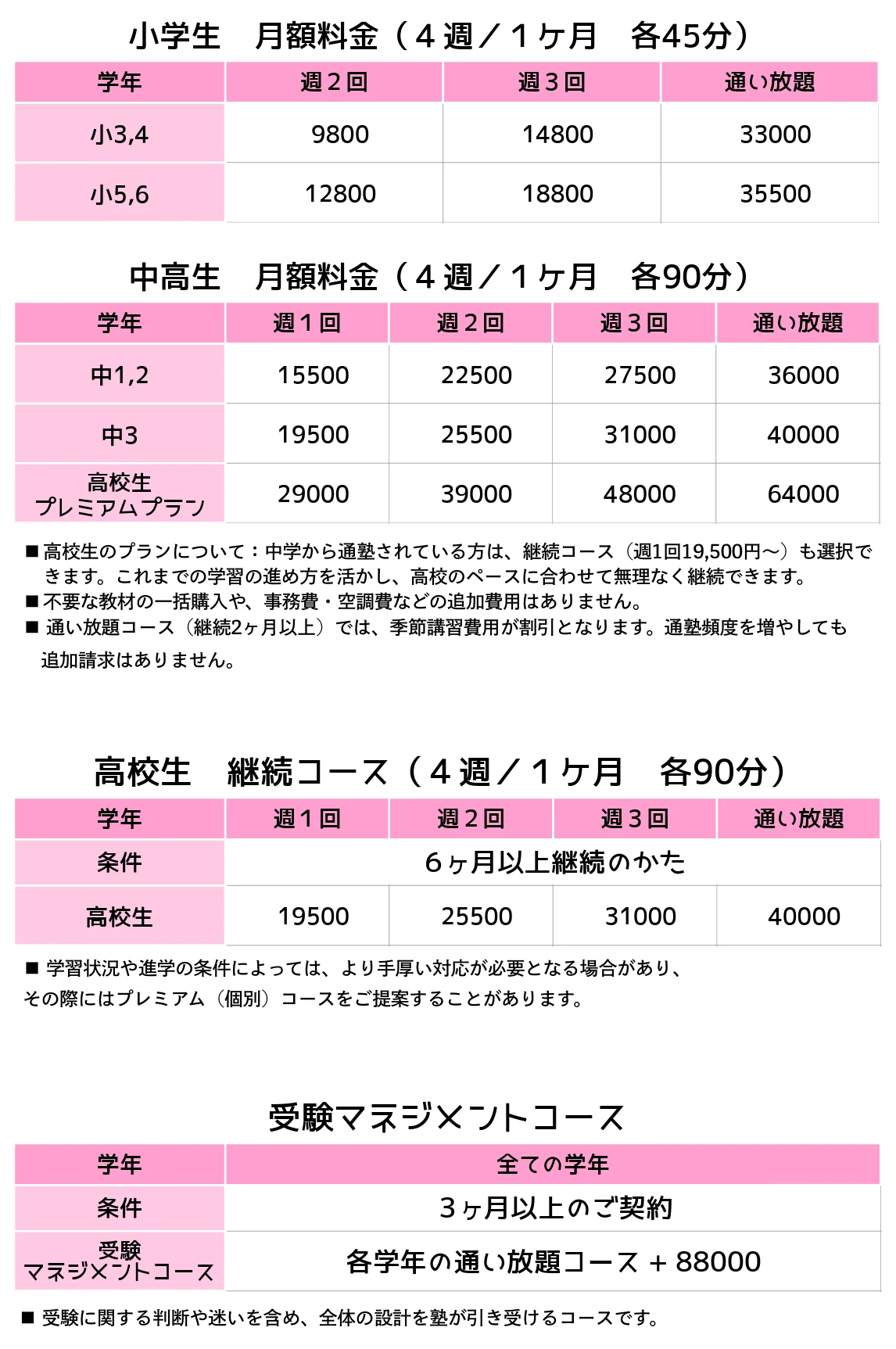 中学生コース 週1回¥15,500~