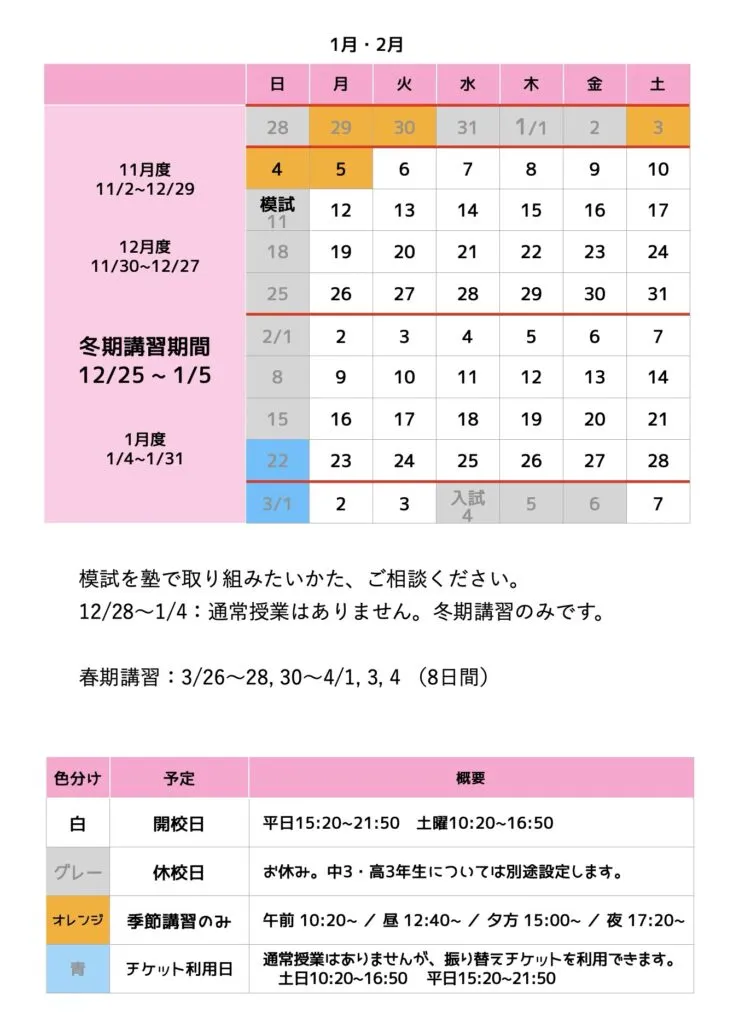 4. 1・2月の予定(新潟市中央区の学習塾fabstudy)