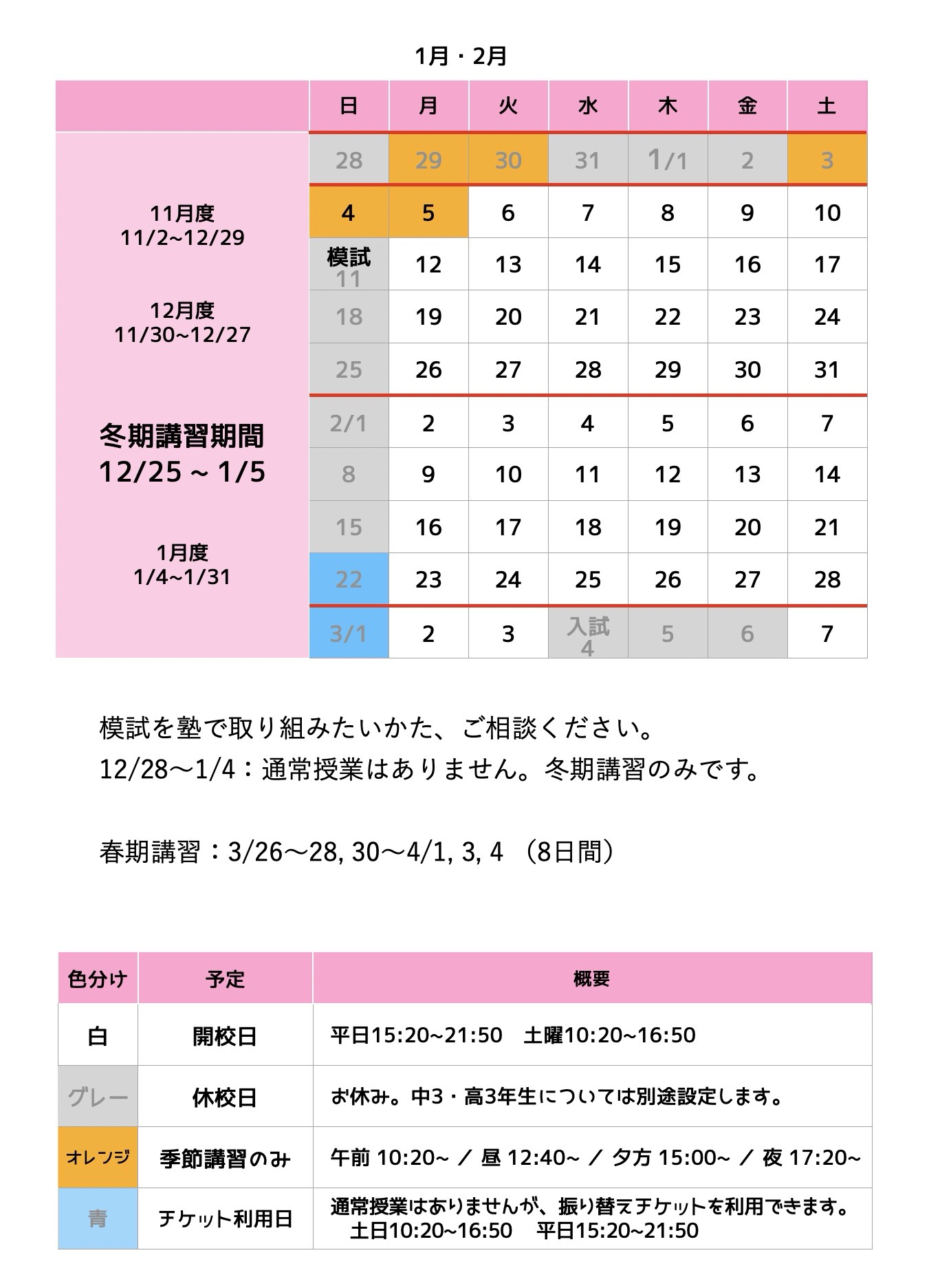 4. 1・2月の予定(新潟市中央区の学習塾fabstudy)