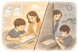 宿題の計算ドリルを始めたのに、1ページがなかなか終わらない。指を使う。消しゴムが増える。筆算を書き直す。最後は合っているので、親は「時間はかかるけど、一応できている」と判断します。ここが最初の見落としです。