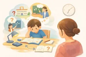 親は消耗します。子どもも、勉強そのものより先に「また言われる時間」を嫌がるようになります。そうなると、もうつまずいている場所は教科の中ではありません。勉強の入口そのものが、家の中で詰まり始めています。